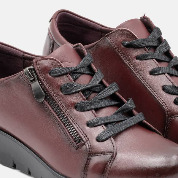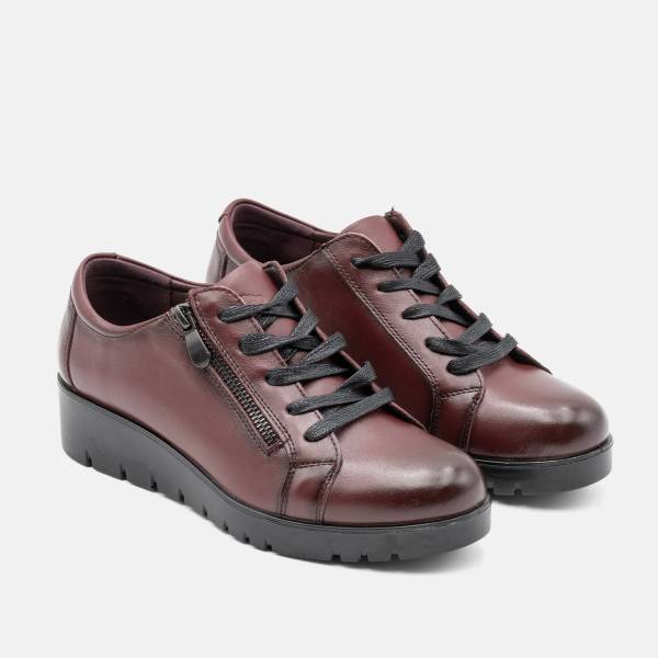 Zapato confort en piel de gran calidad con cremallera lateral y cordones. Suela de goma antideslizante con cuatro centímetros de altura. Un modelo urbano, casual y extremadamente cómodo.