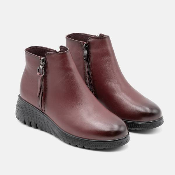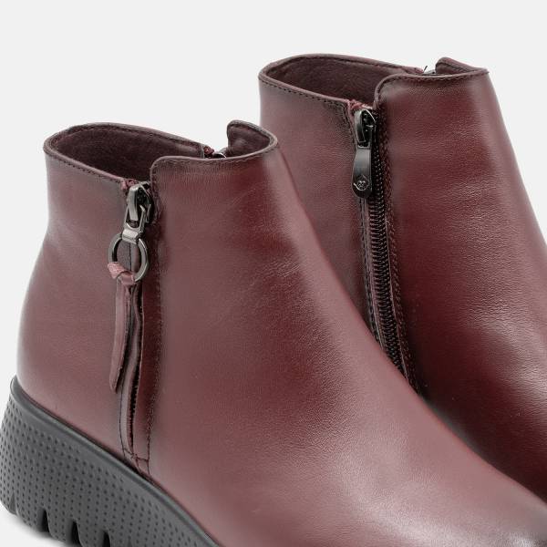 Botín confort en piel de gran calidad con cierre de cremallera. Suela de goma antideslizante con cuatro centímetros de altura. Un modelo urbano, casual y extremadamente cómodo.