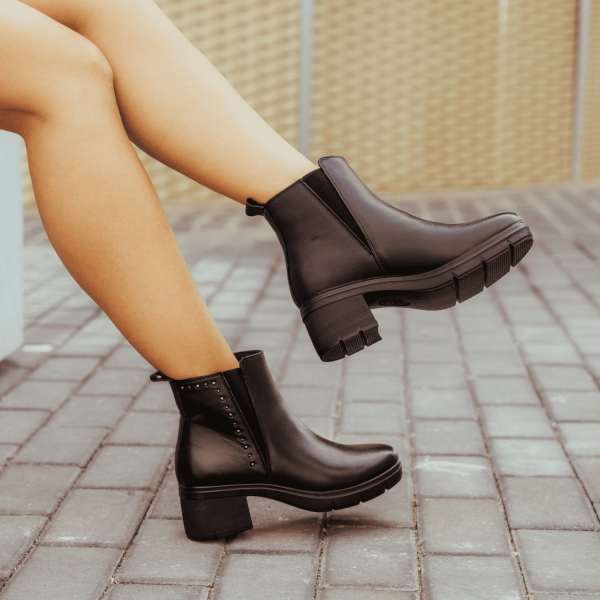 Botín confort en piel con cierre de cremallera y elástico lateral para una mayor comodidad. Suela de goma antideslizante con seis centímetros de altura. Un modelo urbano, casual y extremadamente cómodo.