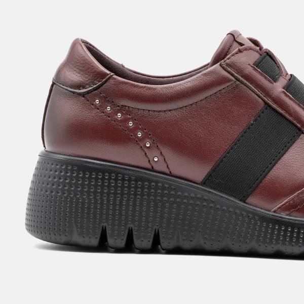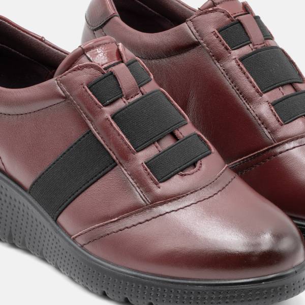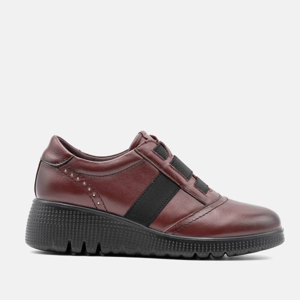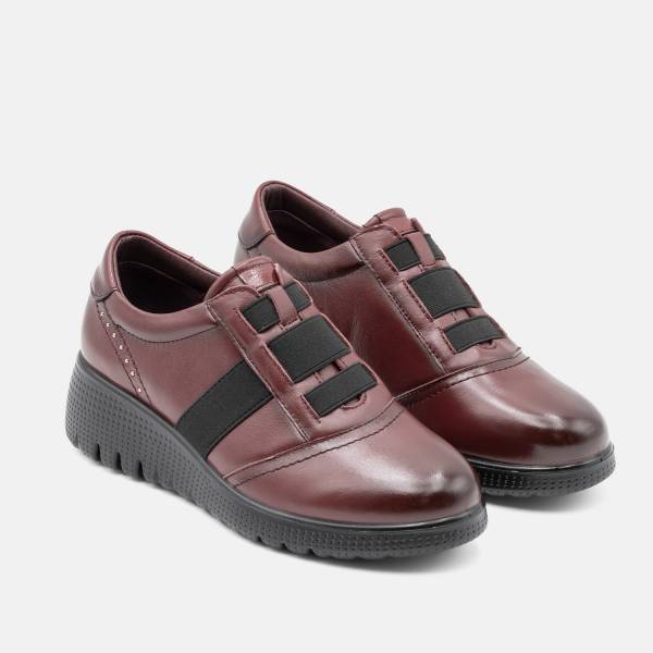 Zapato confort en piel de gran calidad con ajuste de cordones elásticos. Suela de goma antideslizante con cuatro centímetros de altura. Un modelo urbano, casual y extremadamente cómodo.