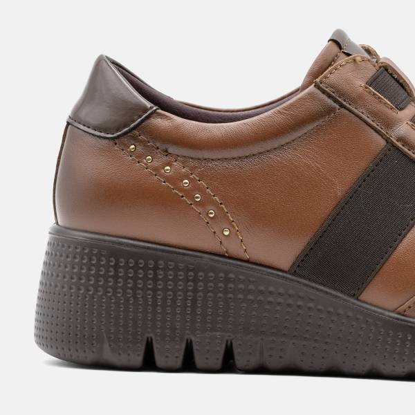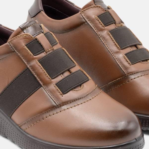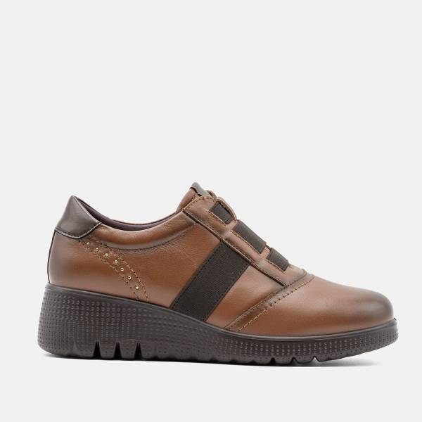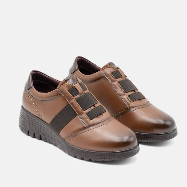 Zapato confort en piel de gran calidad con ajuste de cordones elásticos. Suela de goma antideslizante con cuatro centímetros de altura. Un modelo urbano, casual y extremadamente cómodo.
