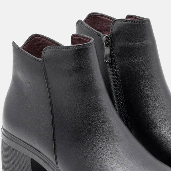 Botín en piel de gran calidad con cierre de cremallera. Suela de goma antideslizante con seis centímetros de altura. Un modelo urbano, casual y extremadamente cómodo. Un básico que necesita tu zapatero para todos tus looks.