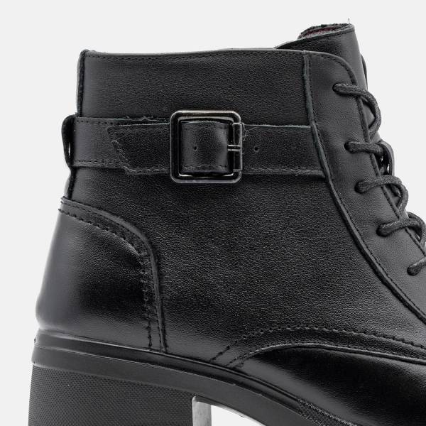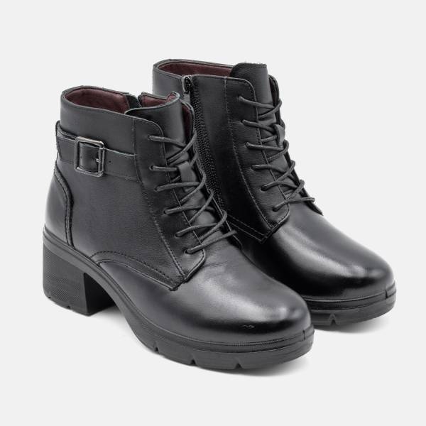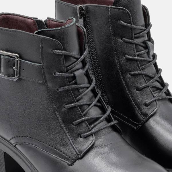 Botín en piel de gran calidad con cierre de cremallera y ajuste de hebilla y cordones. Suela de goma antideslizante con seis centímetros de altura. Un modelo urbano, casual y extremadamente cómodo. Un básico que necesita tu zapatero para todos tus looks.