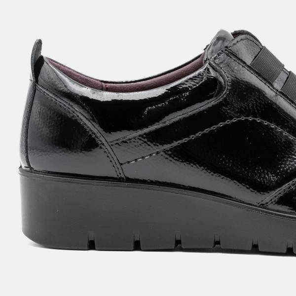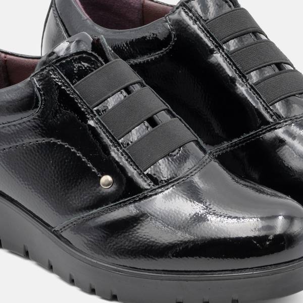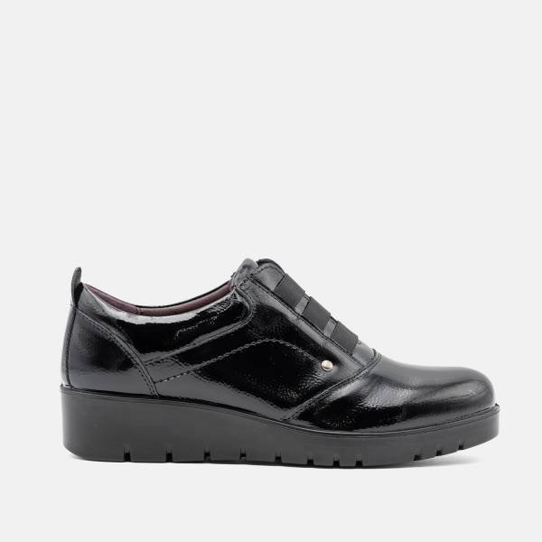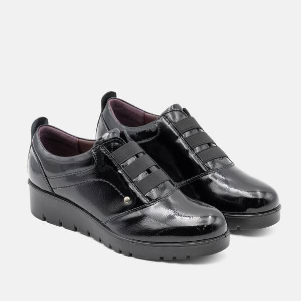 Zapato confort en piel de gran calidad con ajuste de cordones elásticos para una mayor comodidad. Suela de goma antideslizante con cuatro centímetros de altura. Un modelo urbano, casual y extremadamente cómodo.