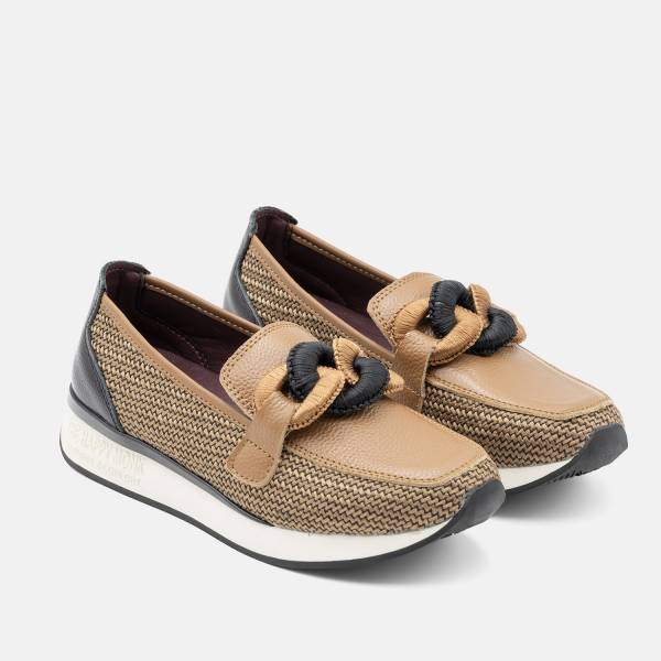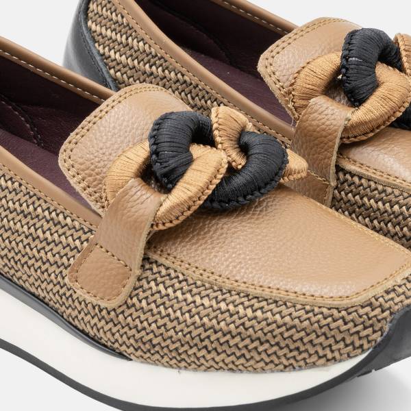 La línea Vanity-011 están fabricadas con piel vacuno y tejido espiga hilado de textil trenzado con adorno de cadena forrada en hilo natural bicolor. perfectas para esta primavera/verano. Con planta Memory Gel extraíble y suela antideslizante. Un modelo con un diseño sencillo y desenfadado que podrás combinar con todas tus prendas.
