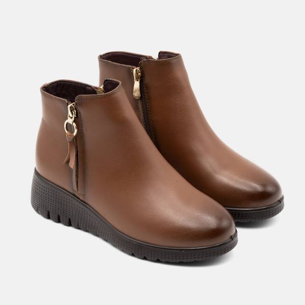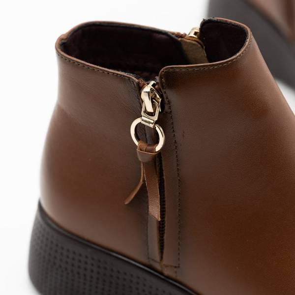 Botín confort en piel de gran calidad con cierre de cremallera. Suela de goma antideslizante con cuatro centímetros de altura. Un modelo urbano, casual y extremadamente cómodo.