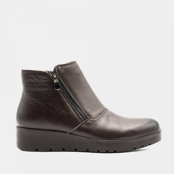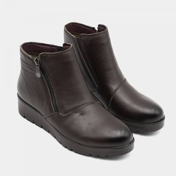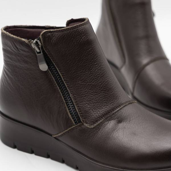 Botín confort en piel de gran calidad con cierre de cremallera. Suela de goma antideslizante con cuatro centímetros de altura. Un modelo urbano, casual y extremadamente cómodo.