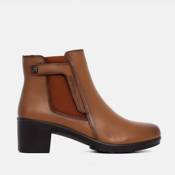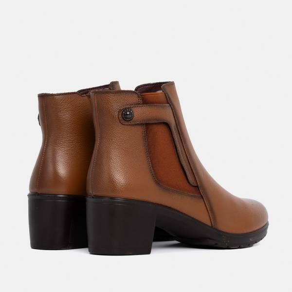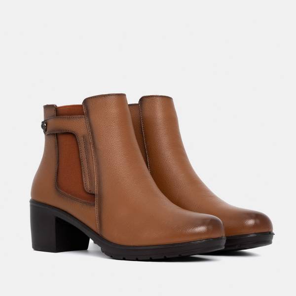 Botines de tacón con cierre mediante cremallera lateral. Lateral elástico para una mayor comodidad con tacha de adorno. Están fabricados con piel de primera calidad con forro en piel y plantilla extraíble con tecnología Memory Gel. Suela de goma antideslizante con tacón de 5 centímetros de altura. Un botín cómodo y fácil de combinar para tu día a día.