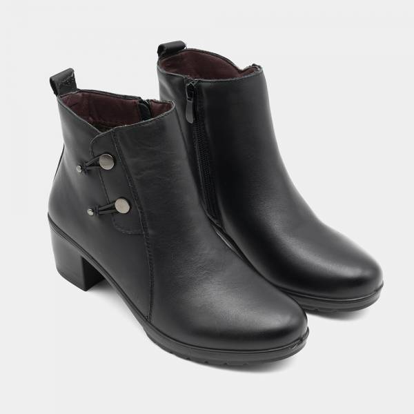 Botines de tacón con cierre mediante tiras elásticas para una mayor comodidad. Están fabricados con piel de primera calidad con forro en piel y plantilla extraíble con tecnología Memory Gel. Suela de goma antideslizante con tacón de 5 centímetros de altura. Un botín cómodo y fácil de combinar para tu día a día.