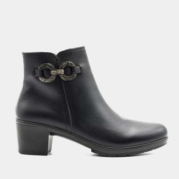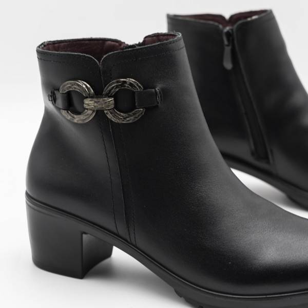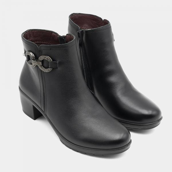 Botines de tacón con cierre mediante cremallera lateral. Están fabricados con piel de primera calidad con forro en piel y plantilla extraíble con tecnología Memory Gel. Suela de goma antideslizante con tacón de 5 centímetros de altura. Un botín cómodo y fácil de combinar para tu día a día.