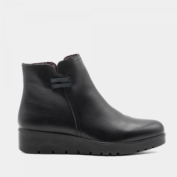Botín confort en piel de gran calidad con cierre de cremallera. Suela de goma antideslizante con cuatro centímetros de altura. Un modelo urbano, casual y extremadamente cómodo.