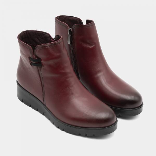 Botín confort en piel de gran calidad con cierre de cremallera. Suela de goma antideslizante con cuatro centímetros de altura. Un modelo urbano, casual y extremadamente cómodo.