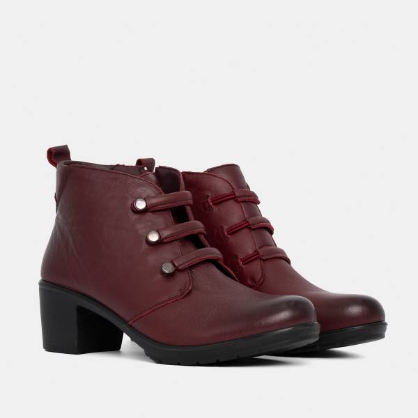 Botines de tacón con cierre mediante tiras elásticas para una mayor comodidad. Están fabricados con piel de primera calidad con forro en piel y plantilla extraíble con tecnología Memory Gel. Suela de goma antideslizante con tacón de 5 centímetros de altura. Un botín cómodo y fácil de combinar para tu día a día.