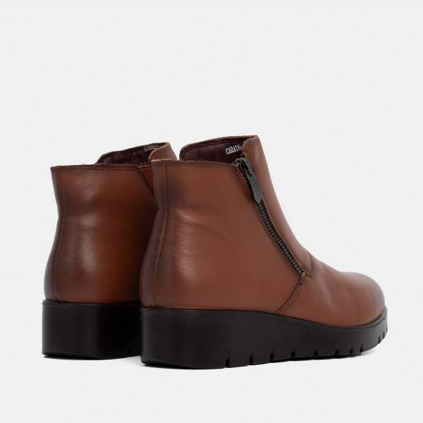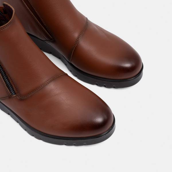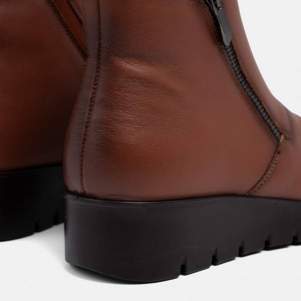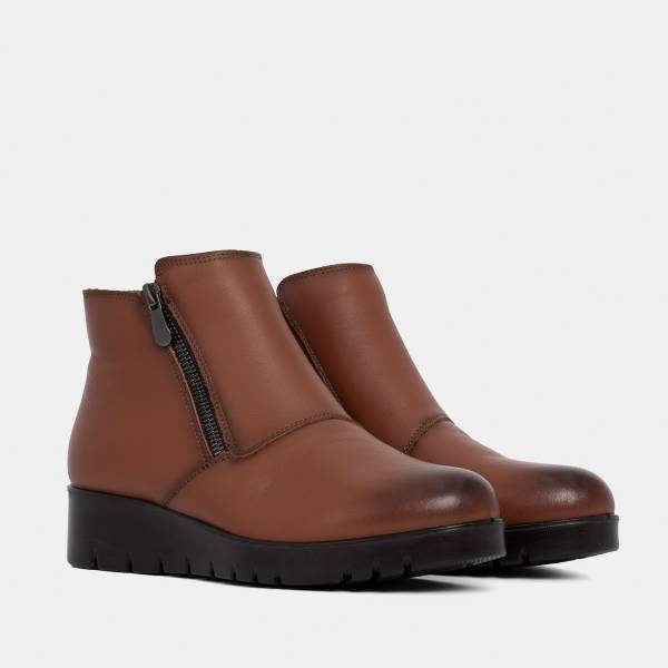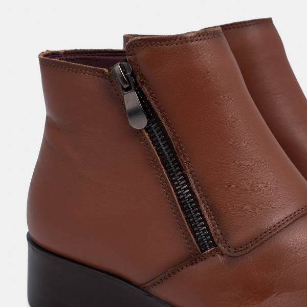 Botín confort en piel de gran calidad con cierre de cremallera. Suela de goma antideslizante con cuatro centímetros de altura. Un modelo urbano, casual y extremadamente cómodo.