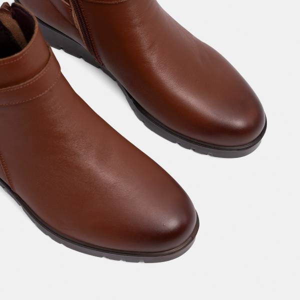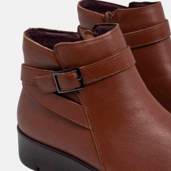 Botín confort en piel de gran calidad con cierre de cremallera. Suela de goma antideslizante con cuatro centímetros de altura. Un modelo urbano, casual y extremadamente cómodo.