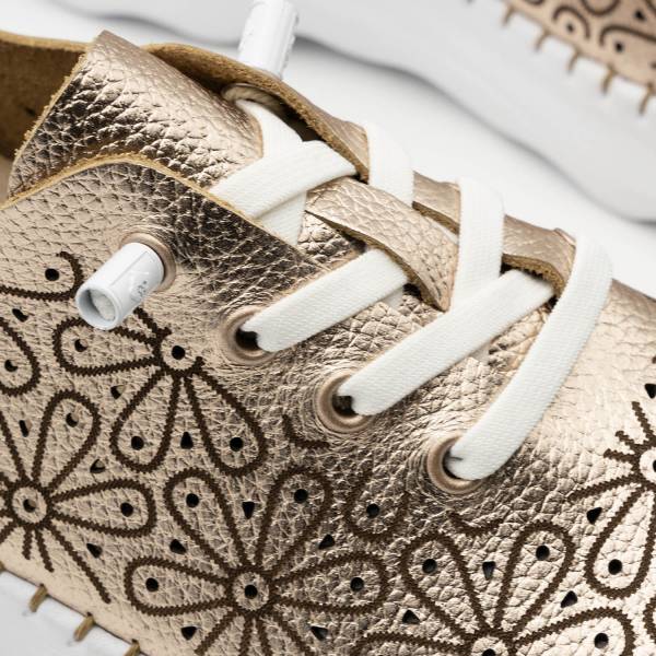 La línea Calpe-007 está fabricada con pieles naturales de alta calidad que aportan suavidad y durabilidad en cada uso. Incorpora planta Memory Gel extraíble para una pisada cómoda durante todo el día, suela cosida a mano y cierre con cordones que garantiza un ajuste perfecto. Su diseño fresco y actual destaca por los picados florales a láser, que aportan ligereza y un toque distintivo, convirtiéndolo en un modelo versátil ideal para acompañarte en todos tus looks diarios.