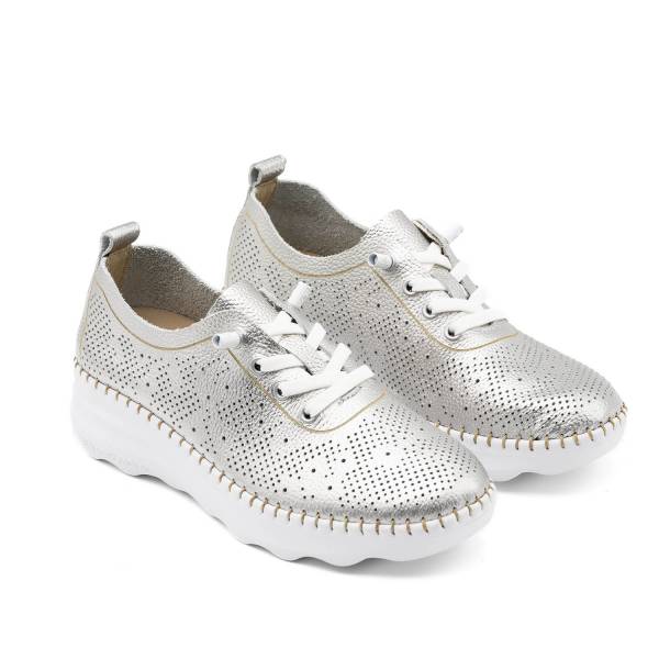 La línea Calpe-011 está fabricada con pieles naturales de primera calidad y un sofisticado diseño de picados láser que aporta frescura a cada paso. Incorpora planta Memory Gel, suela cosida a mano y cordones elásticos para un ajuste perfecto, logrando un equilibrio ideal entre estilo deportivo y confort.