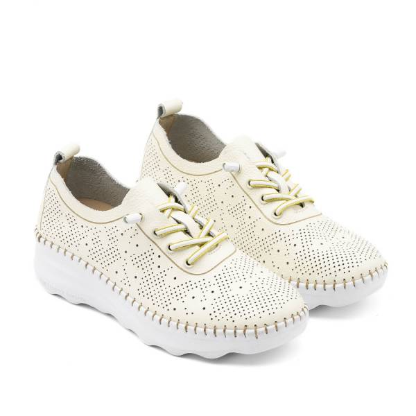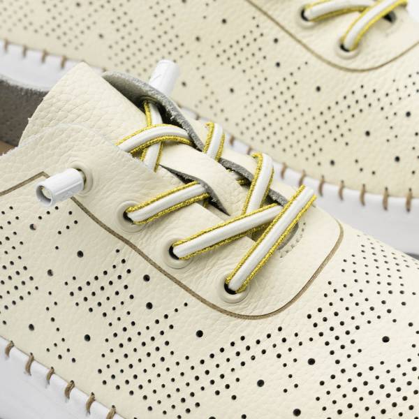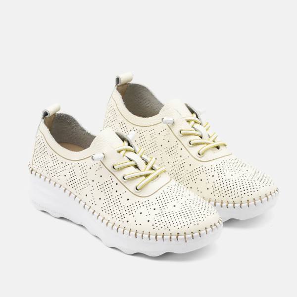 La línea Calpe-011 está fabricada con pieles naturales de primera calidad y un sofisticado diseño de picados láser que aporta frescura a cada paso. Incorpora planta Memory Gel, suela cosida a mano y cordones elásticos para un ajuste perfecto, logrando un equilibrio ideal entre estilo deportivo y confort.
