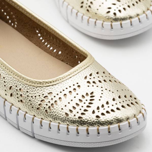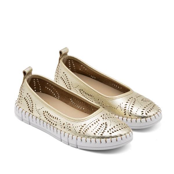 La línea Creta-023 está fabricada con pieles naturales de primera calidad y un diseño de bailarina con picados láser ornamentales que favorecen la transpirabilidad. Con planta Memory Gel, suela ultra flexible con cosido a mano y un práctico tirador trasero, es el modelo ideal para disfrutar de una comodidad y un estilo femenino en cada paso.