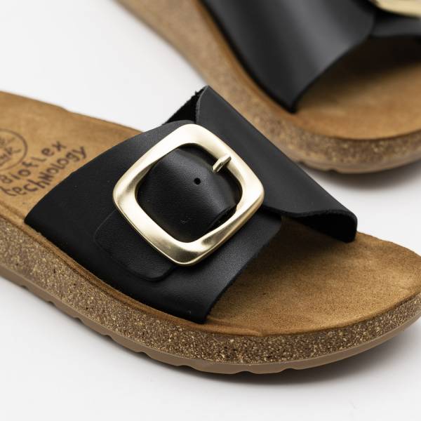 La línea Formentera-001 está fabricada con pieles naturales de acabado suave y destaca por su icónica hebilla de gran tamaño que aporta un toque de tendencia. Con una planta anatómica BIO GEL diseñada para el máximo confort y una suela de aspecto natural, es la sandalia tipo pala perfecta para quienes buscan un calzado ligero, versátil y con carácter artesanal.