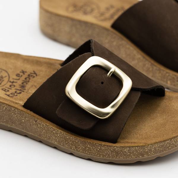 La línea Formentera-001 está fabricada con pieles naturales de acabado suave y destaca por su icónica hebilla de gran tamaño que aporta un toque de tendencia. Con una planta BIO GEL anatómica diseñada para el máximo confort y una suela de aspecto natural, es la sandalia tipo pala perfecta para quienes buscan un calzado ligero, versátil y con carácter artesanal.