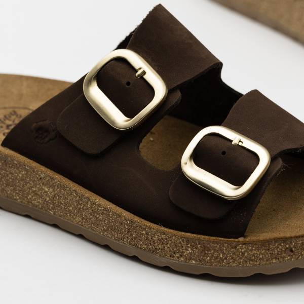 La línea Formentera-002 está fabricada con pieles naturales de acabado suave y un diseño de doble tira con hebillas ajustables para una sujeción personalizada. Cuenta con una planta anatómica de gran confort y una suela ligera de aspecto natural, ofreciendo un estilo funcional y artesanal ideal para caminar con total libertad durante todo el día.