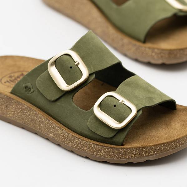 La línea Formentera-002 está fabricada con pieles naturales de acabado suave y un diseño de doble tira con hebillas ajustables para una sujeción personalizada. Cuenta con una planta BIO anatómica de gran confort GEL y una suela ligera de aspecto natural, ofreciendo un estilo funcional y artesanal ideal para caminar con total libertad durante todo el día.