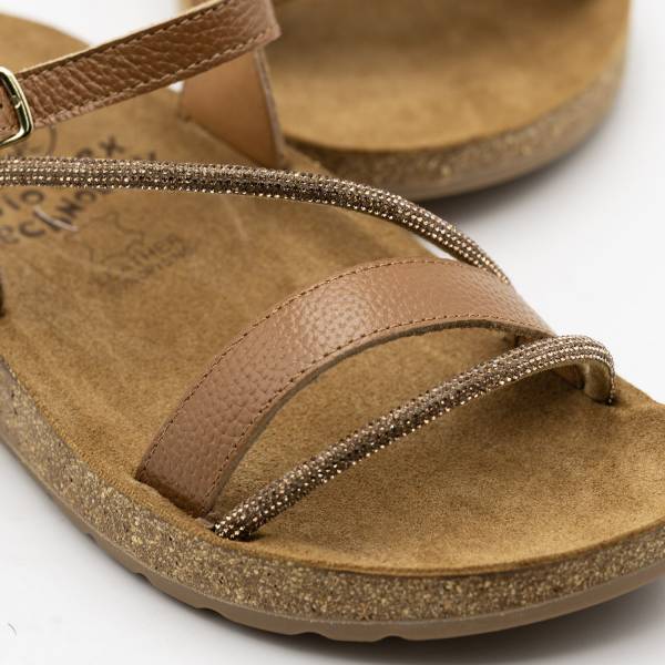 La línea Formentera-009 está fabricada con pieles naturales de alta calidad y destaca por su diseño de tiras finas adornadas con sutiles detalles de brillo que aportan un toque sofisticado. Incorpora una planta anatómica BIO GEL de gran confort, suela ligera de aspecto natural y un cierre de hebilla ajustable al tobillo, ofreciendo una sujeción segura y una elegancia versátil para cualquier ocasión veraniega.