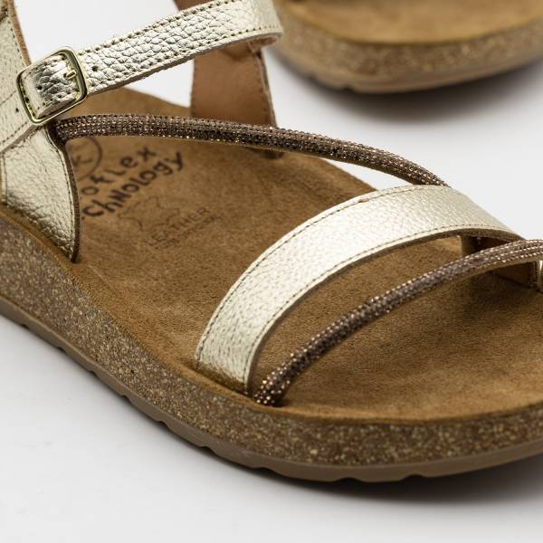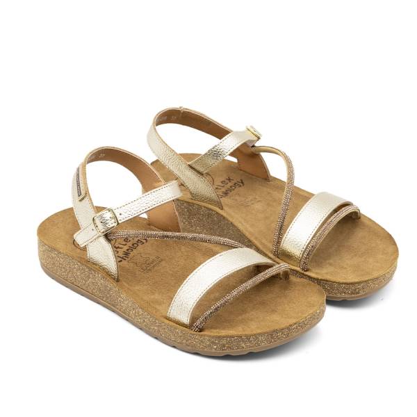 La línea Formentera-009 está fabricada con pieles naturales de alta calidad y destaca por su diseño de tiras finas adornadas con sutiles detalles de brillo que aportan un toque sofisticado. Incorpora una planta anatómica BIO GEL de gran confort, suela ligera de aspecto natural y un cierre de hebilla ajustable al tobillo, ofreciendo una sujeción segura y una elegancia versátil para cualquier ocasión veraniega.