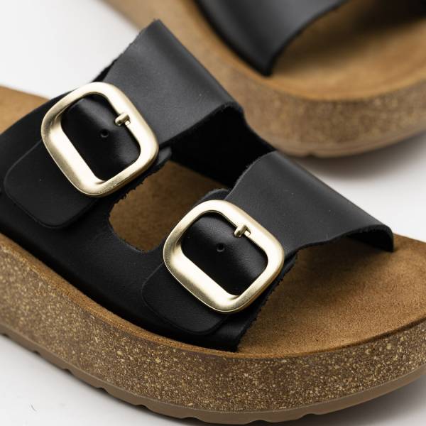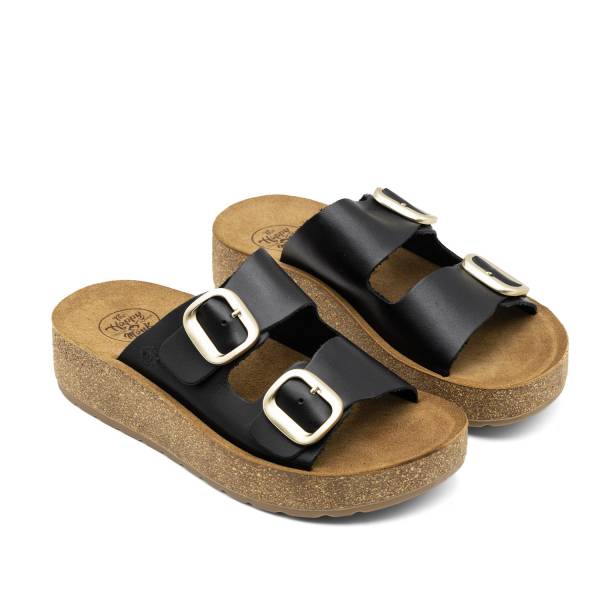 La línea Gomera-002 está fabricada con pieles naturales de acabado suave y destaca por su funcional diseño de doble tira con hebillas metálicas ajustables. Incorpora una planta anatómica de gran confort sobre una suela de plataforma ligera con acabado de aspecto natural, ofreciendo una sujeción personalizada y una elevación elegante ideal para el uso diario.