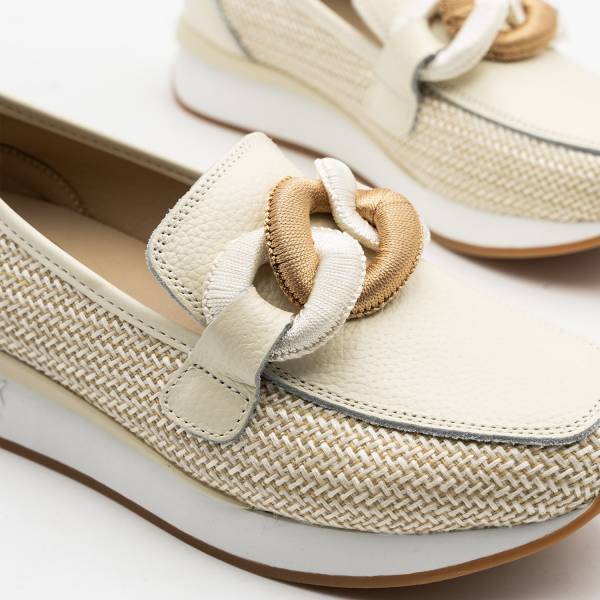 La línea Vanity-011 están fabricadas con piel vacuno y tejido espiga hilado de textil trenzado con adorno de cadena forrada en hilo natural bicolor. perfectas para esta primavera/verano. Con planta Memory Gel extraíble y suela antideslizante. Un modelo con un diseño sencillo y desenfadado que podrás combinar con todas tus prendas.