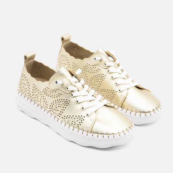 La línea Cádiz-001 están fabricadas con pieles naturales para darle ese color con el que no pasarás desapercibida. Con planta Memory Gel extraíble, suela ultra flexible cosida a mano y ajustables elásticos para que sigas dejando huella en cada pisada. Es un diseño fresco y actual gracias a su diseño de picados a laser que podrás combinar con todos tus looks.